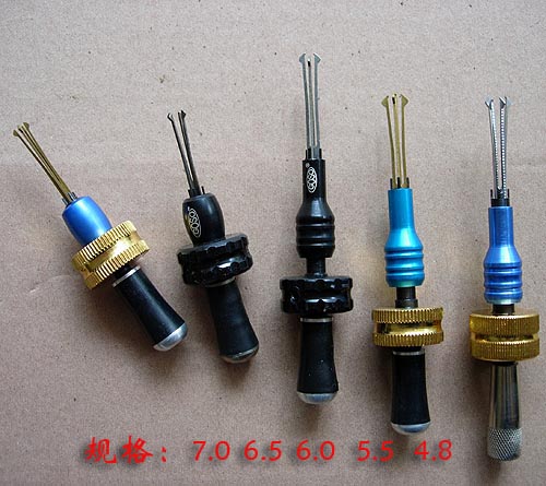 这样设计可以根据不同锁弹子深浅的不同变化,适时调节,非常方便。由于本套有三把不同大小的设计,也避免更换不同套管(传动档)的麻烦。