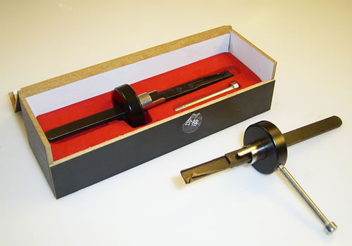 首先架设好圆型转动杆,前端插进锁孔,必须与锁也保持水平直线,然后稍加转动圆形转动的力度很关键,以转动到芯弹力解除不能转动后,就不再加力转动,保持这个转力,插入工具后匀速抽拉,在抽拉过程中有遇到轻微阻力表明是锁片被开启到位,继续前后抽拉到开启锁为止,使用操作非常简单,把握关键规范,开启时间正常在2-15秒左右.稍加练习就可以掌握.(此汽车开锁工具开启转动方向为逆时针旋转)